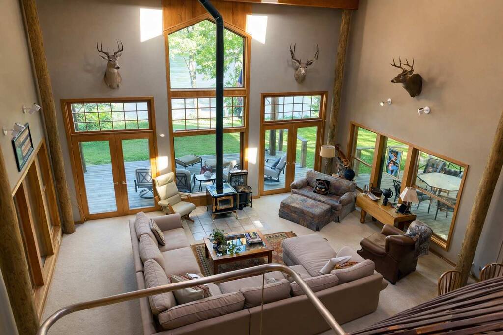Spacious 4-bedroom cabin with Sleeping Loft, river views, a private deck, and easy access to world-class trout fishing